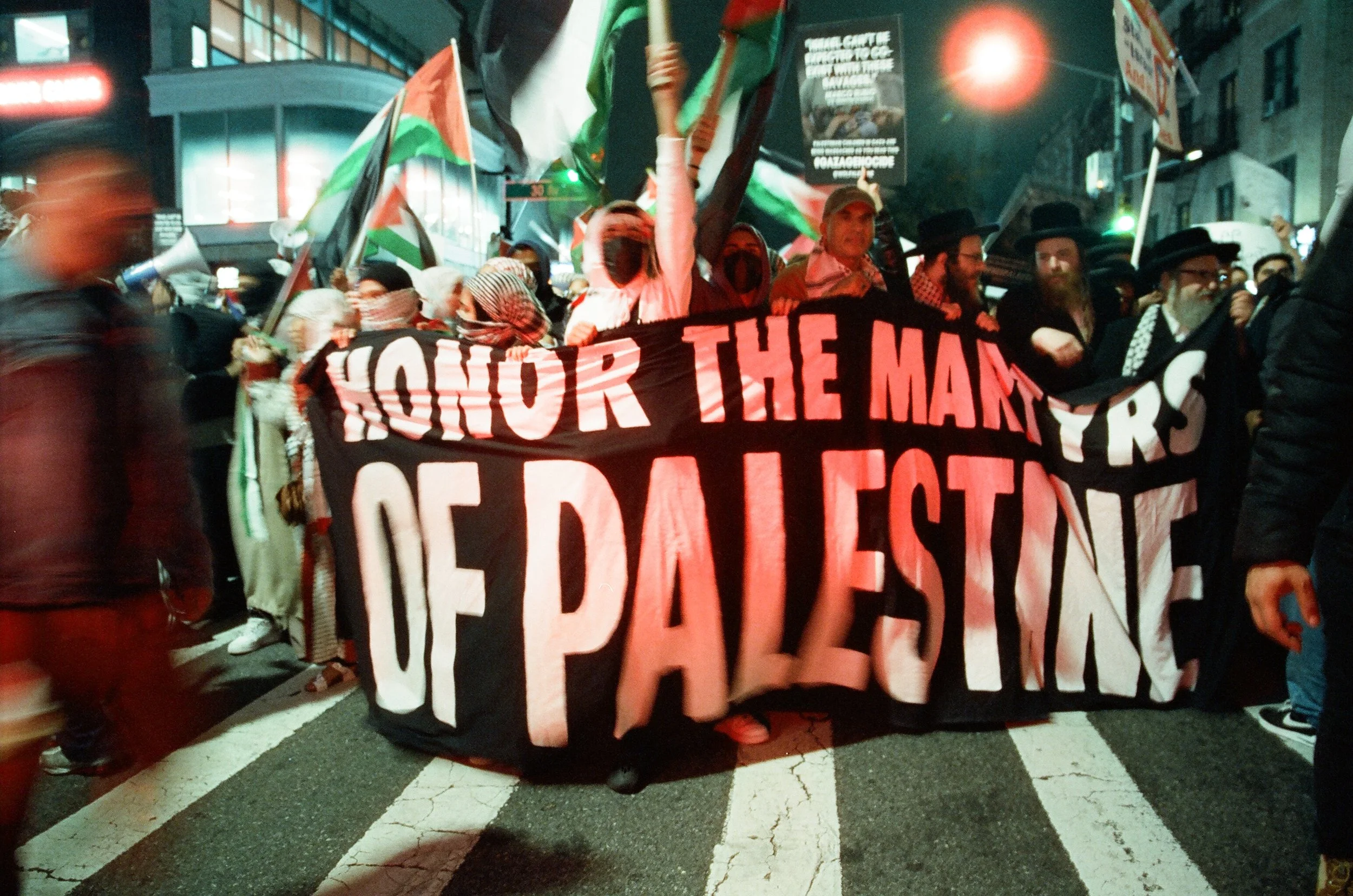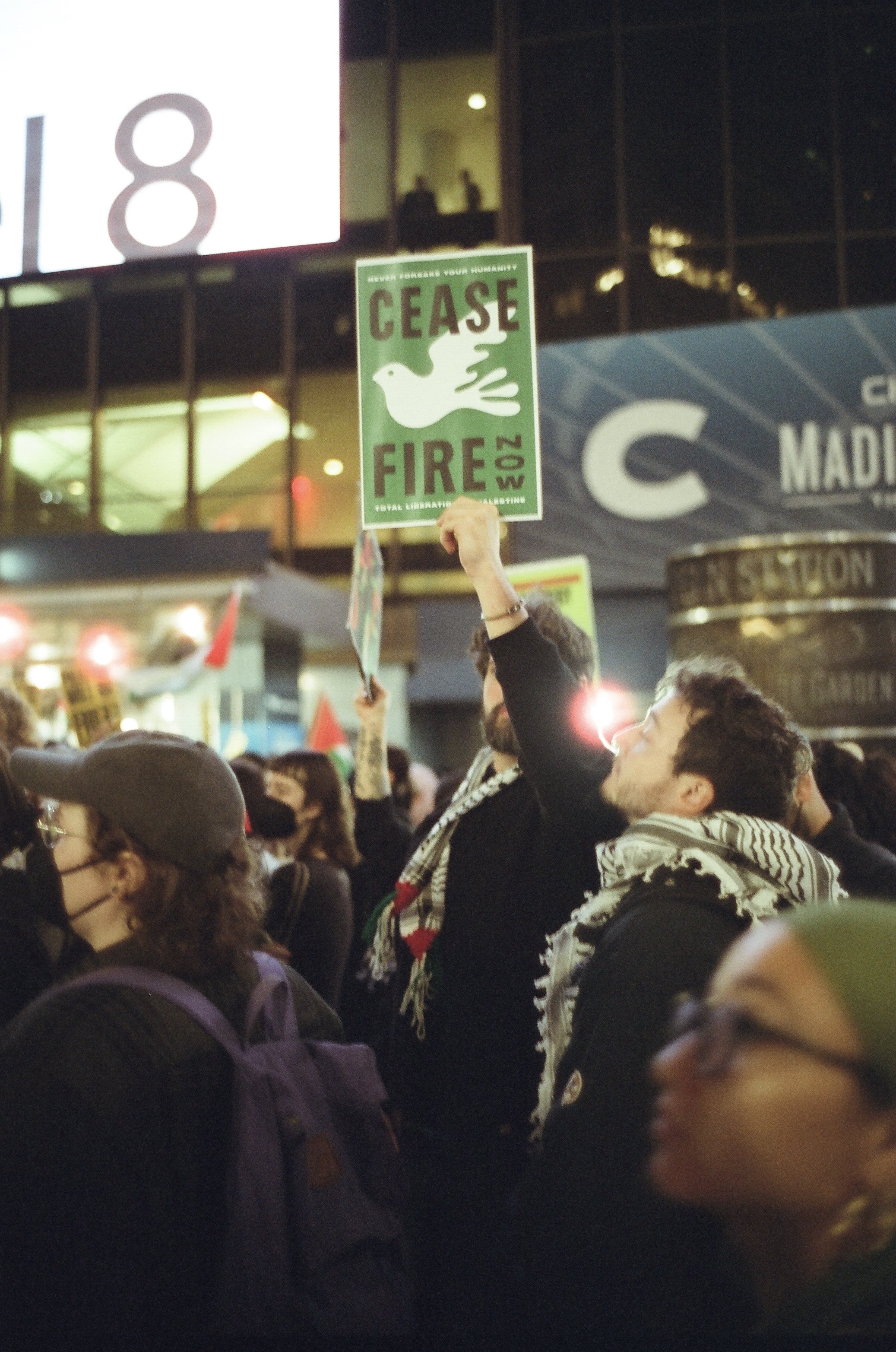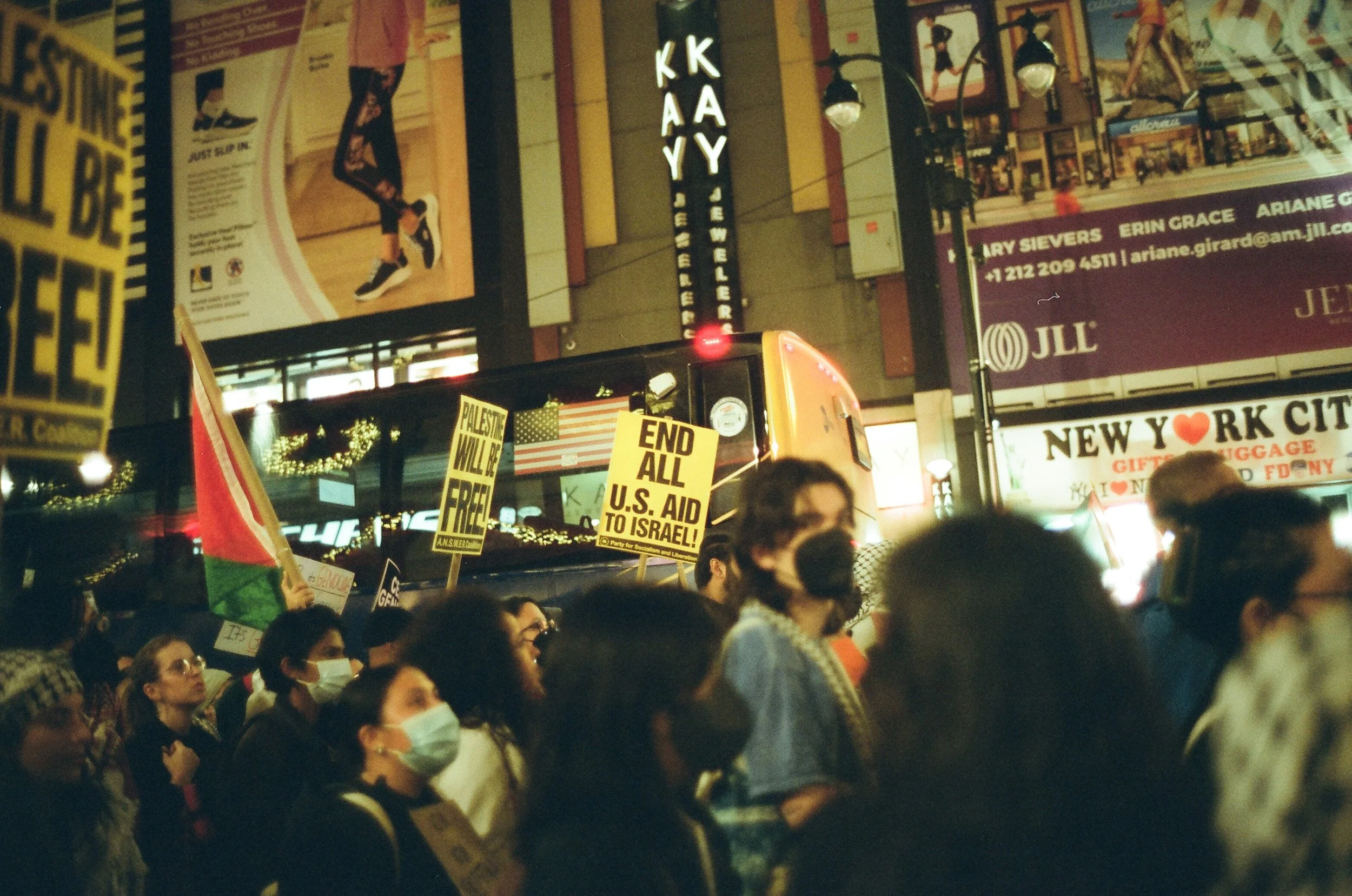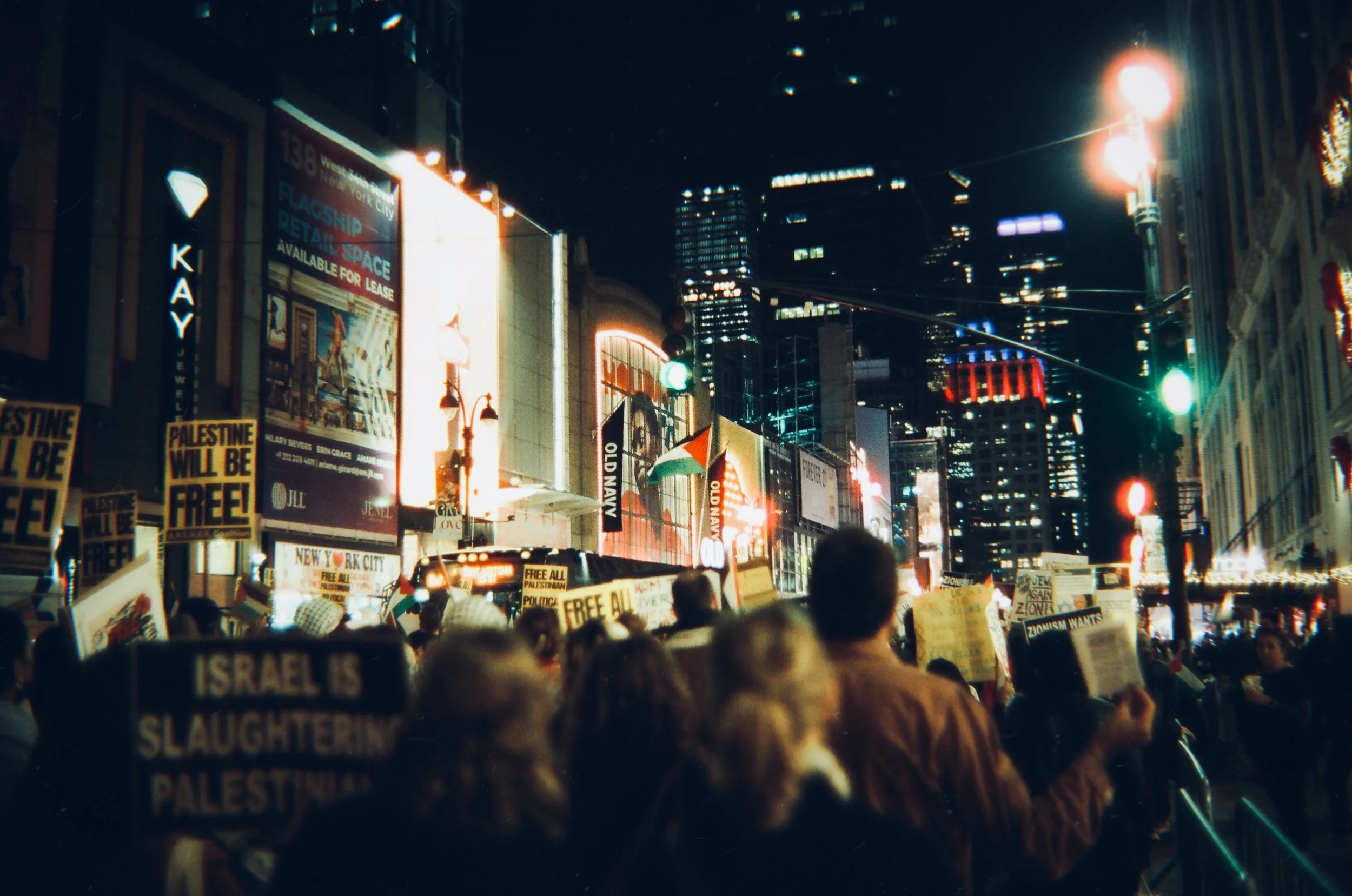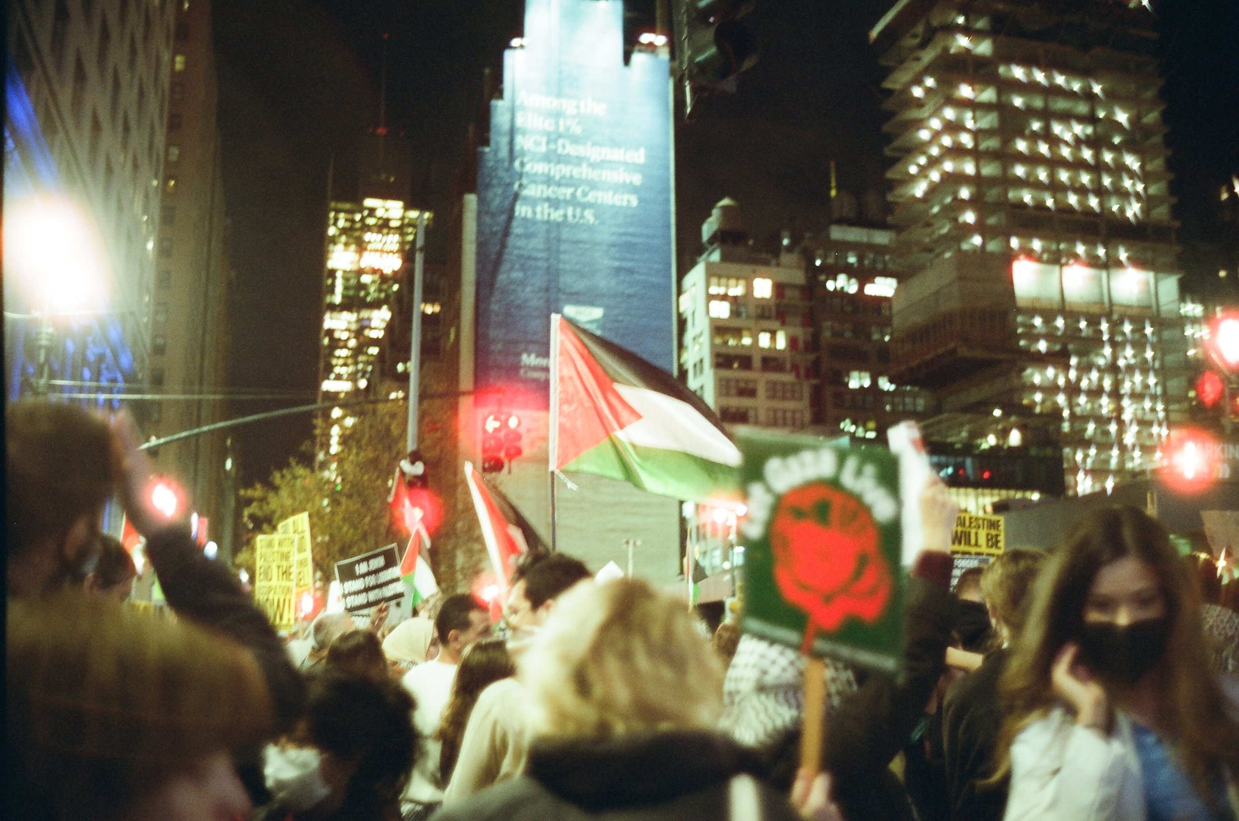 Election day protest in midtown Manhattan. Later that night, Trump won the 2024 election. The genocide ultimately made the democrats lose the election.