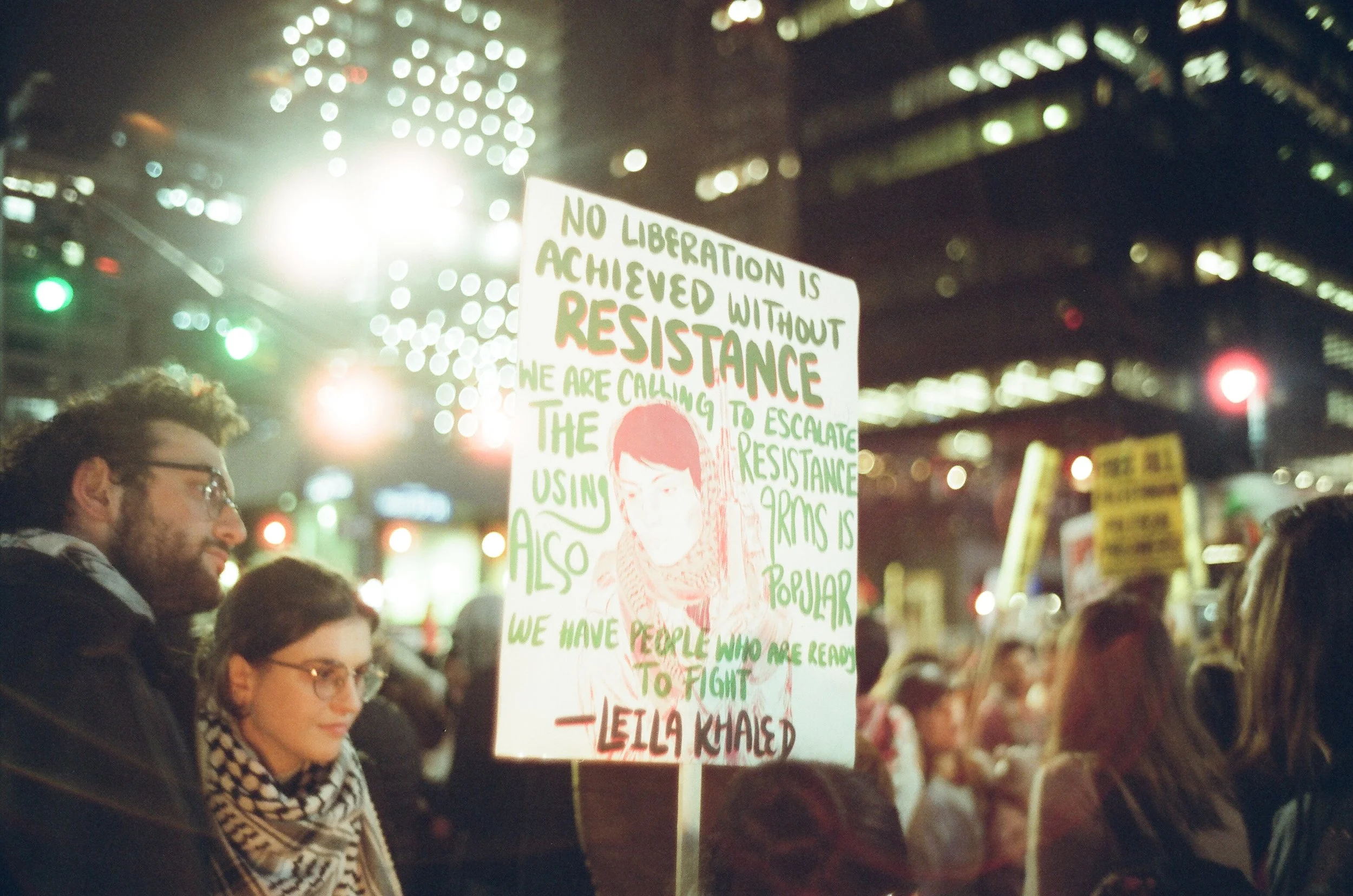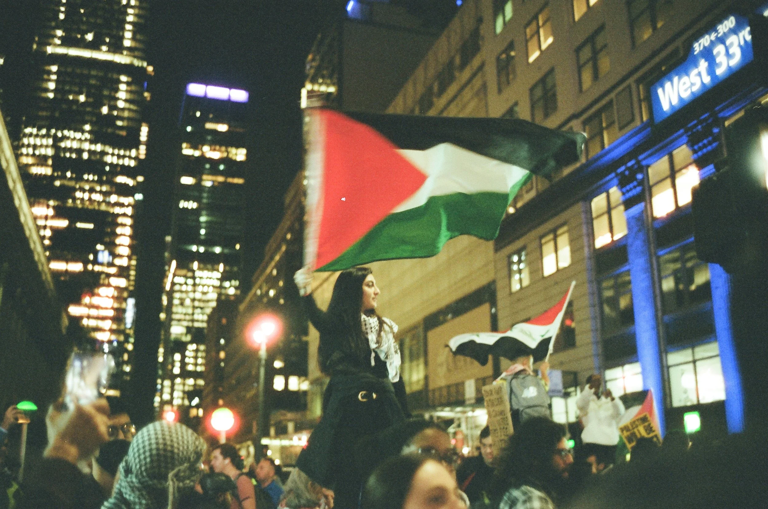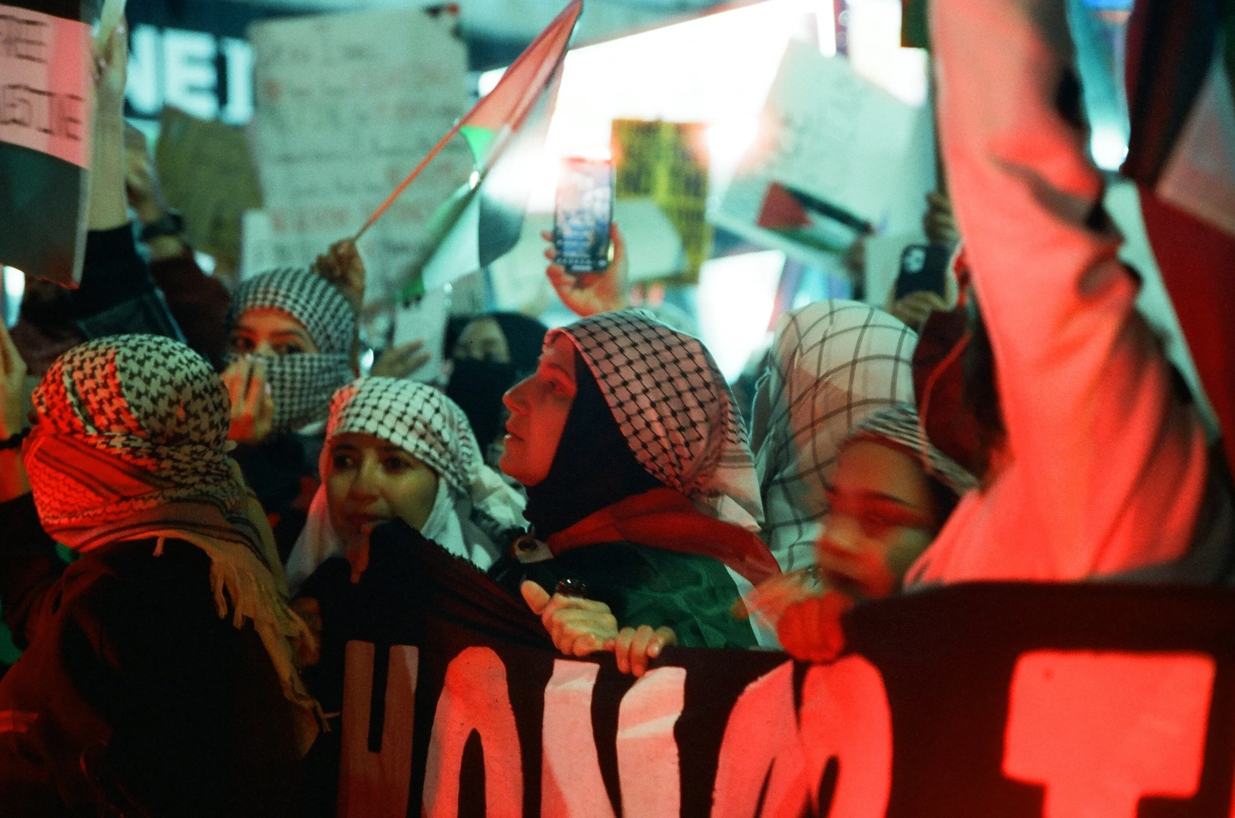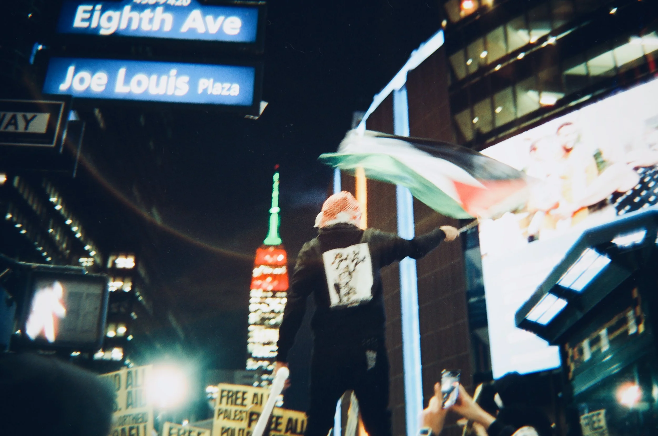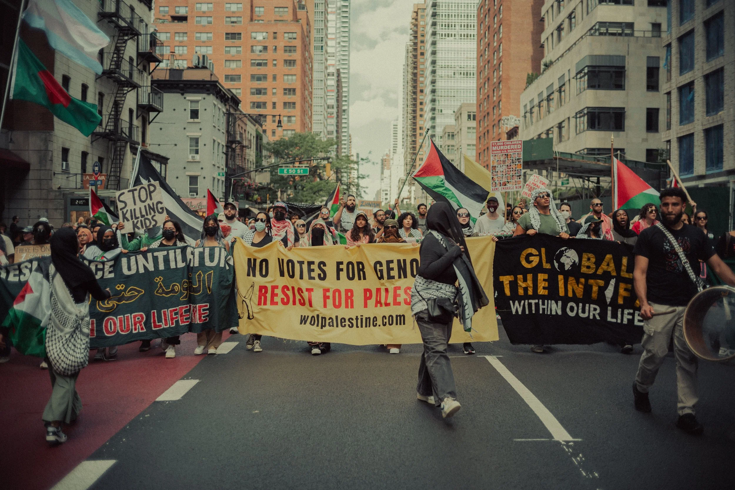 Election day protest in midtown Manhattan. Later that night, Trump won the 2024 election. The genocide ultimately made the democrats lose the election.
