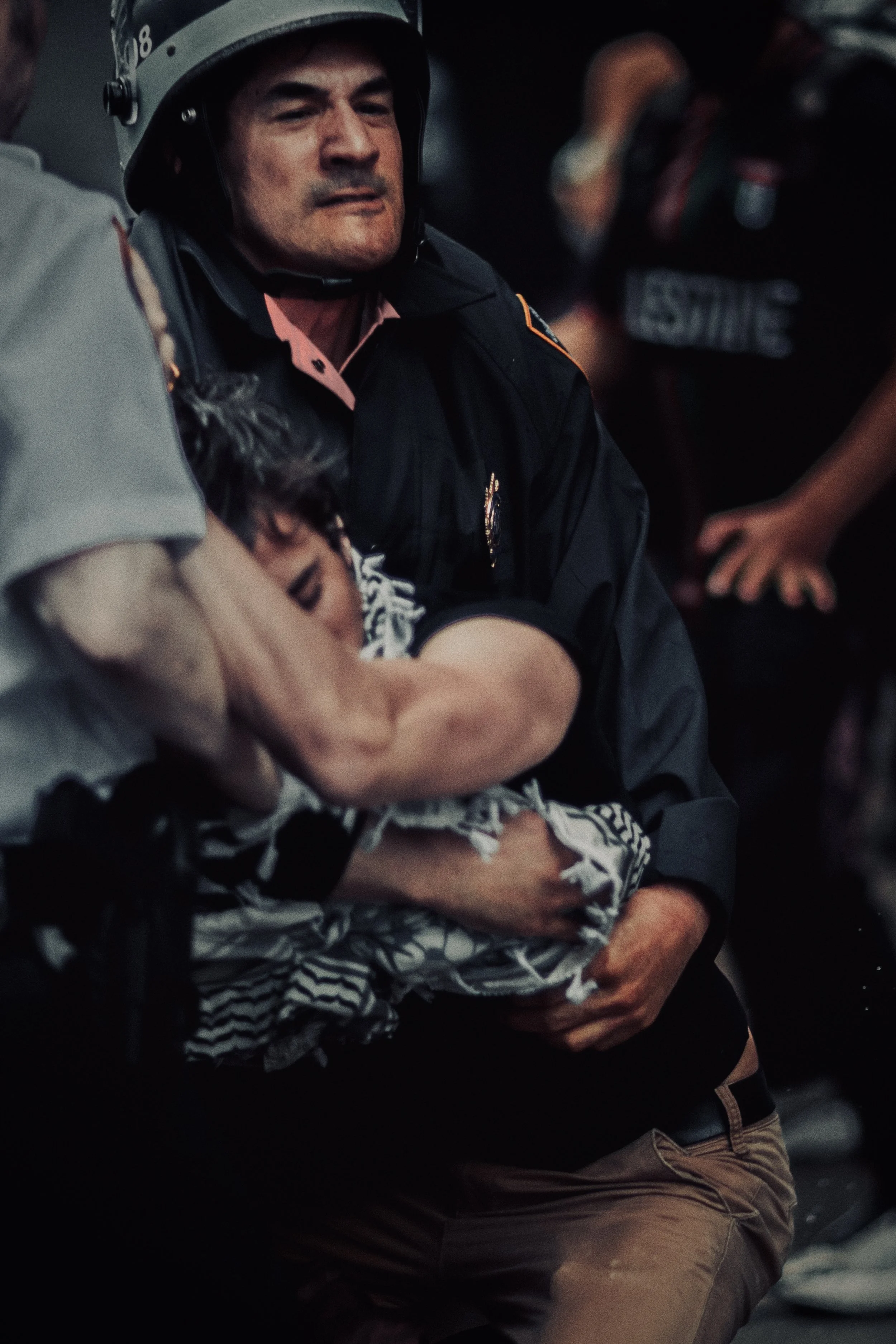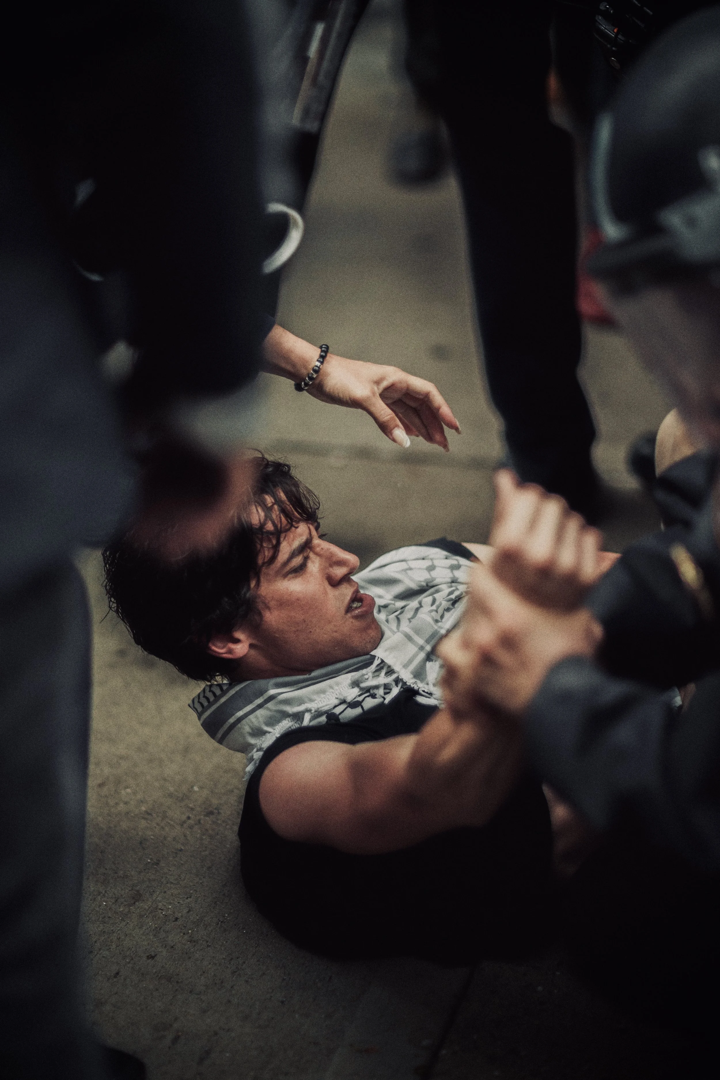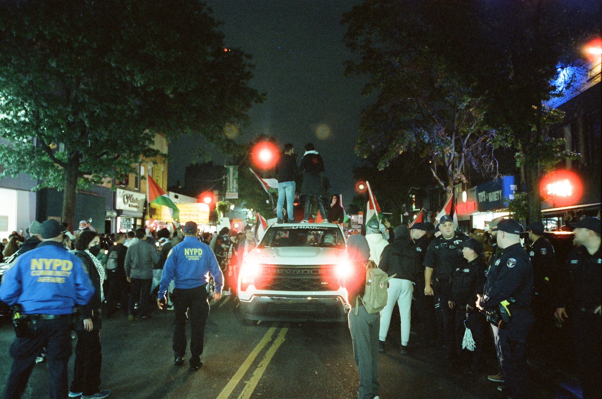 NYPD brutality assaulted protestors. Abdullah Akl suffered a broken arm due to police attacking and arresting him as he lead the protest that night. Others were seen bleeding or put in chokeholds.