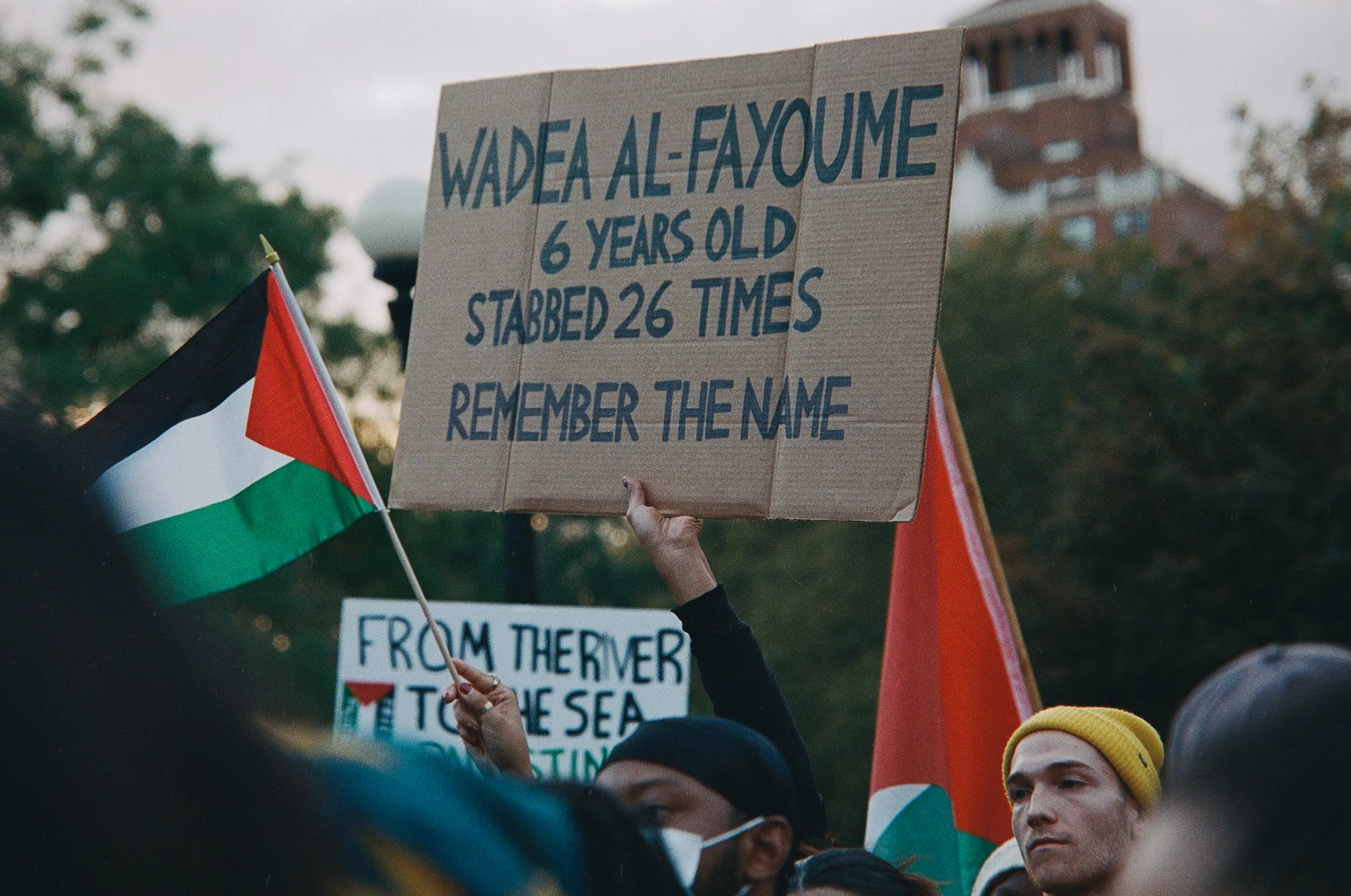 Following indiscriminate bombings from Israel in Gaza killing scores of men, women, and children, six year old Palestinian Wadea Al-Fayoume was murdered in his home in Chicago and his mother was severely wounded by their landlord. It was concluded as a hate crime because of his identity as a Palestinian. Even outside Palestine, Palestinians faced hate and violence against them. - Washington Square Park, 10/17/2023